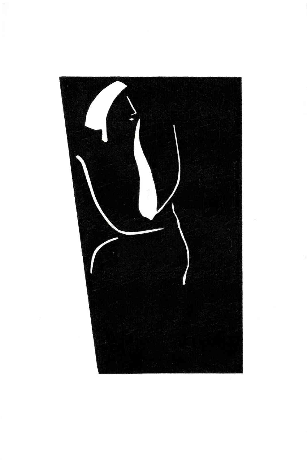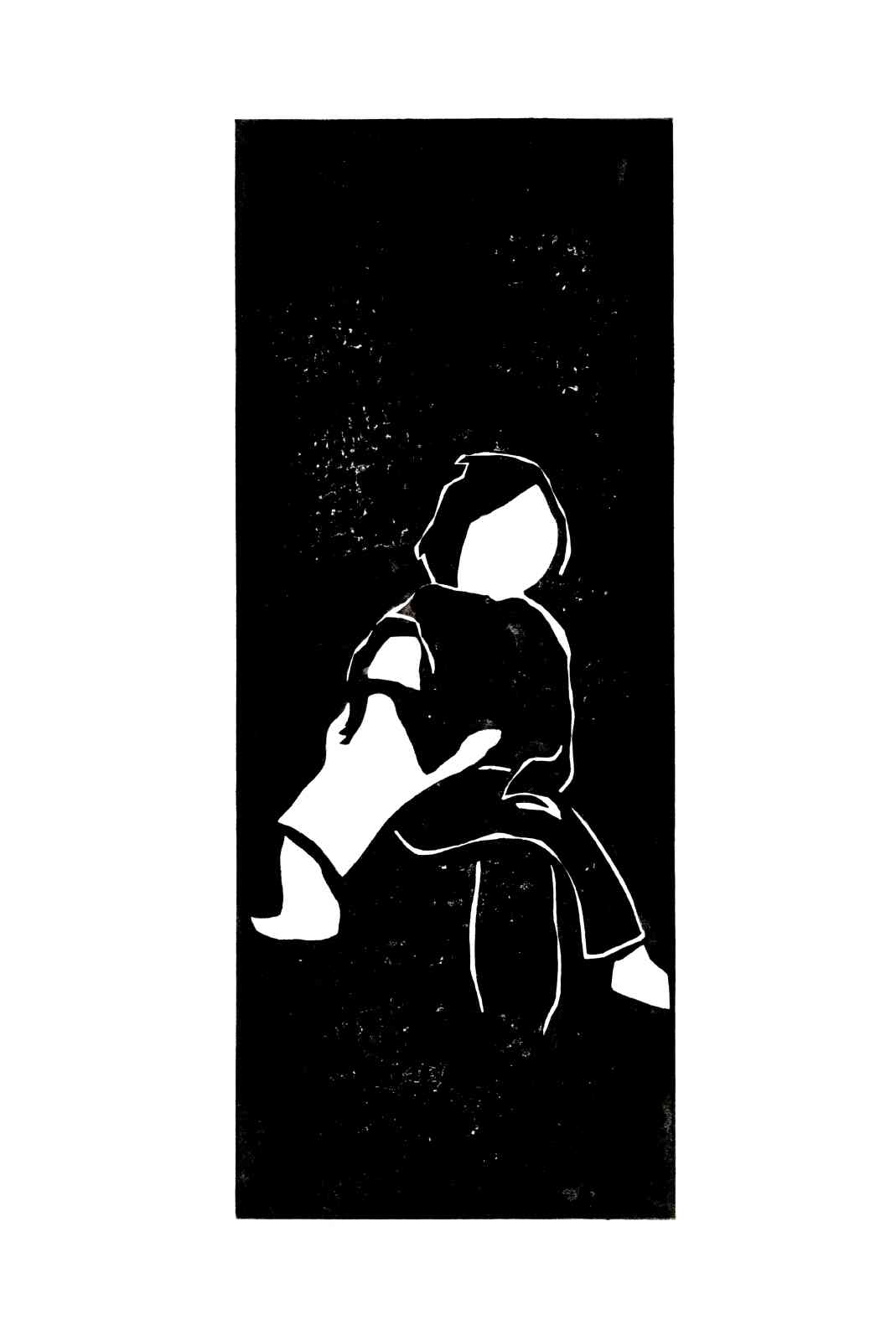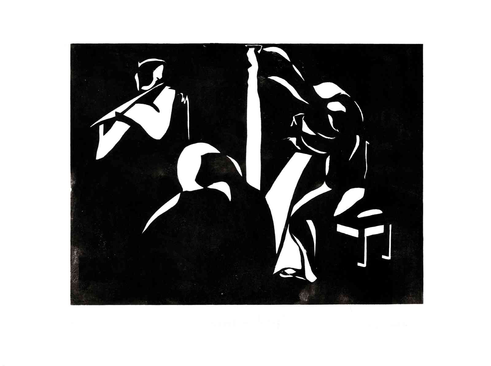 Bei dieser Hochdrucktechnik wird das Motiv direkt auf einen Karton gezeichnet. Mit geeignetem Schneidewerkzeug werden Linien und Flächen aus dem Karton herausgeschnitten. Es entsteht ein Papierschnitt, eine Schablone, die als Druckstock dient. Dieser wird mit schwarzer Farbe eingewalzt und in einer kleinen Auflage, durch Reibung mit einem Falzbein, auf Papier gedruckt. Zuletzt werden ausgewählte Auflagen einzelner Motive aquarelliert.