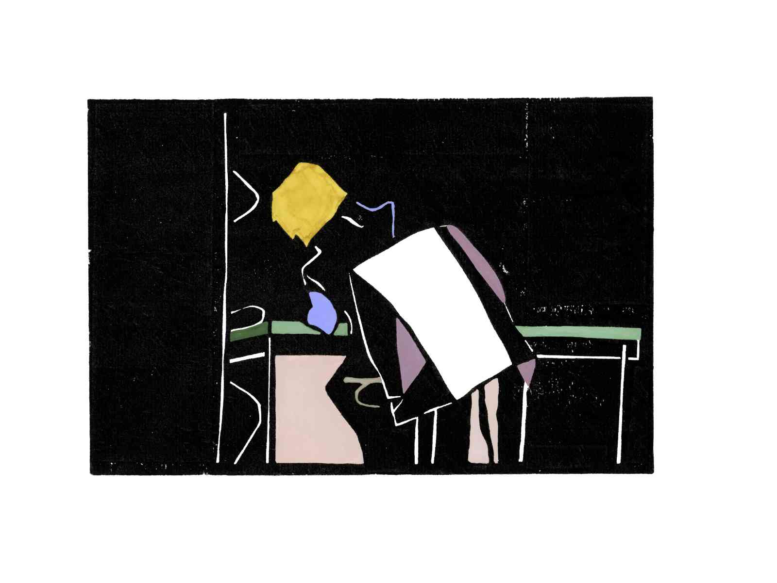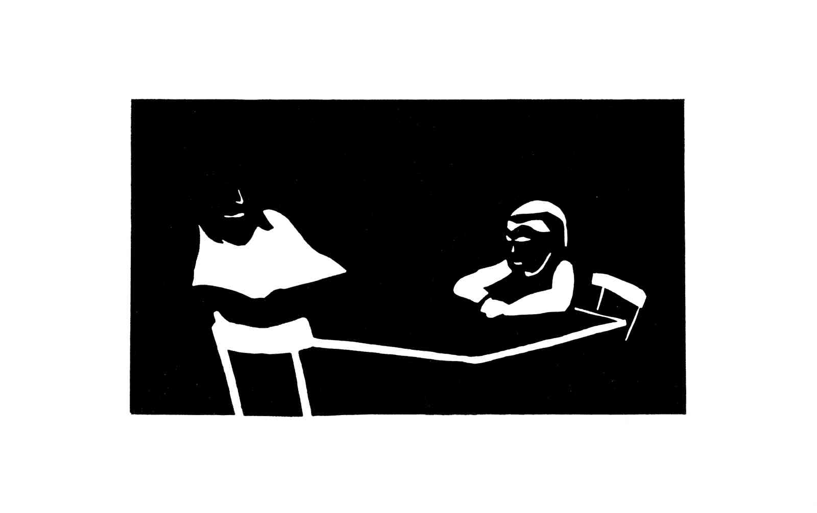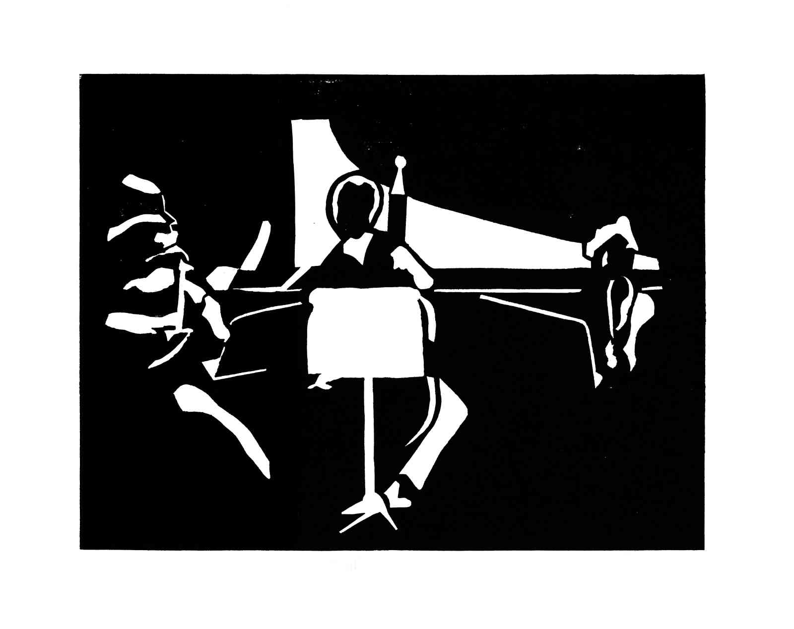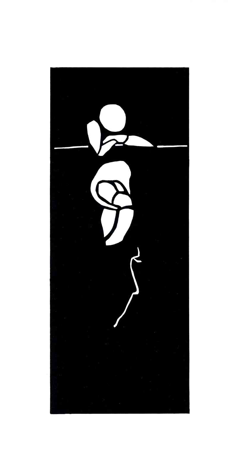 Bei dieser Hochdrucktechnik wird das Motiv direkt auf einen Karton gezeichnet. Mit geeignetem Schneidewerkzeug werden Linien und Flächen aus dem Karton herausgeschnitten. Es entsteht ein Papierschnitt, eine Schablone, die als Druckstock dient. Dieser wird mit schwarzer Farbe eingewalzt und in einer kleinen Auflage, durch Reibung mit einem Falzbein, auf Papier gedruckt. Zuletzt werden ausgewählte Auflagen einzelner Motive aquarelliert.